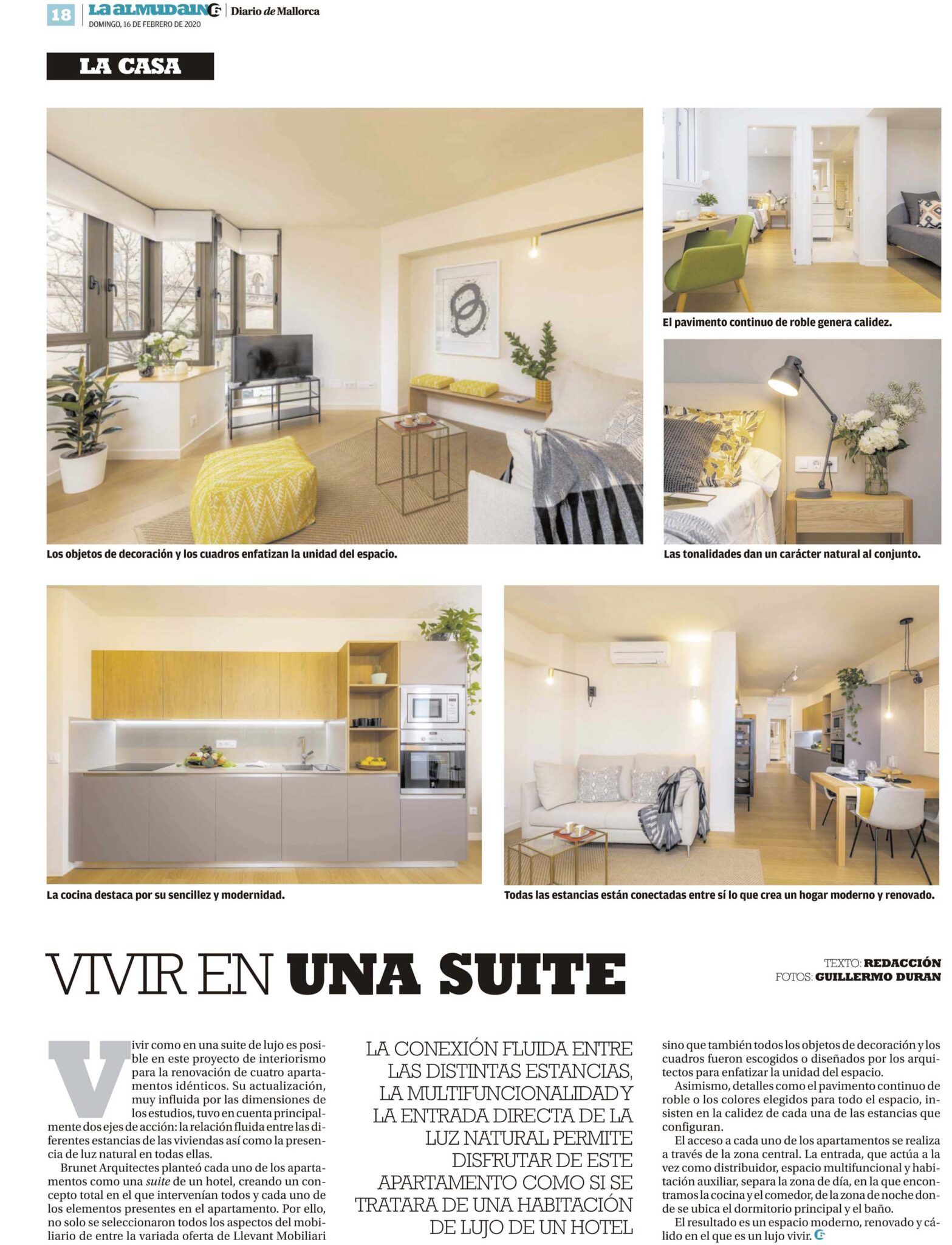 Brunet arquitectes updates this building in Manacor to convert it into an elegant and functional home, reminiscent of the postulates of Destijl or the worksLiving like in a luxury suite is possible in this interior design project for the renovation of four identical flats. The renovation, which was strongly influenced by the size of the studios, took into account two main lines of action: the fluid relationship between the different rooms of the flats as well as the presence of natural light in all of them.of Mondrian.