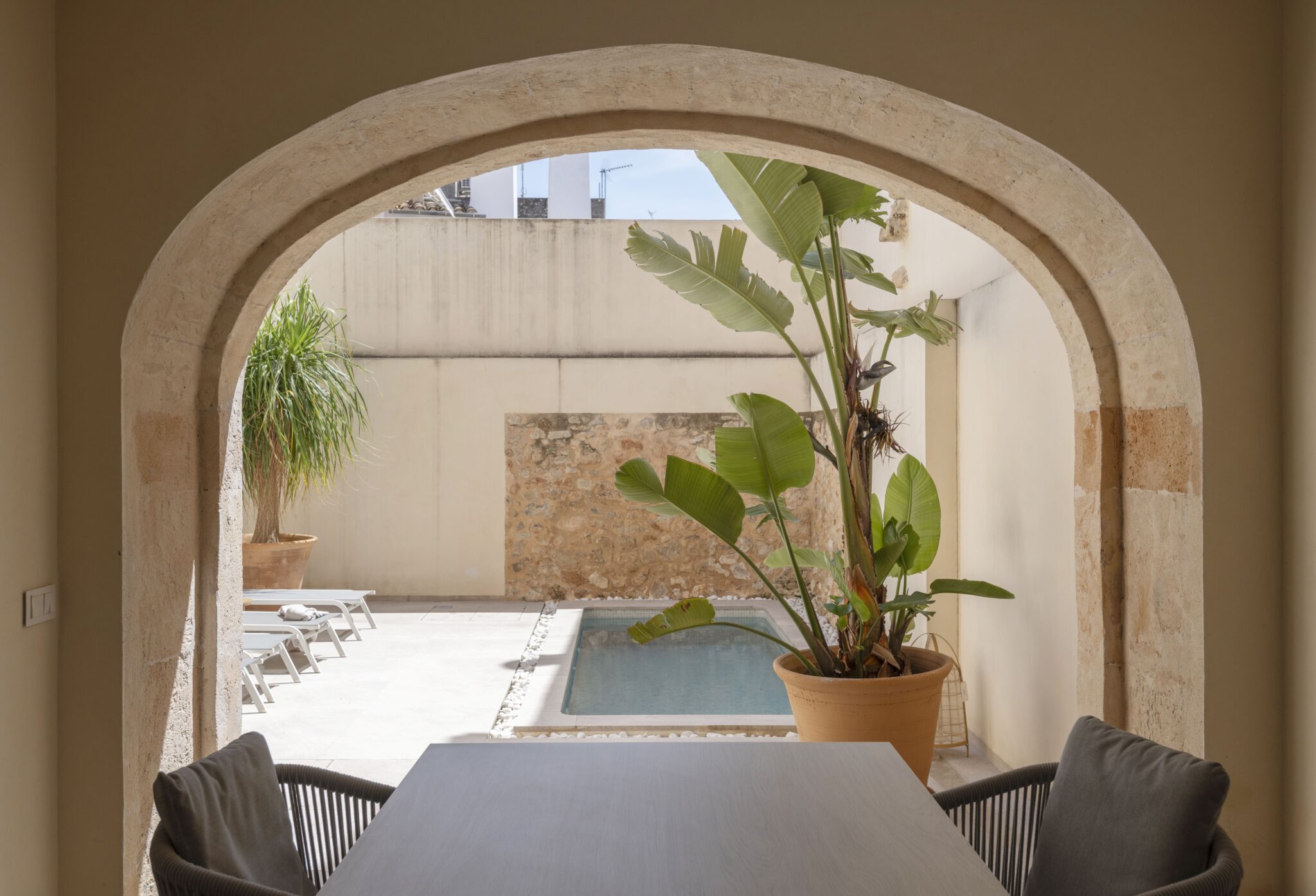 Reforma integral de una vivienda entre medianeras en el casco urbano de Petra, construida originalmente a principios del siglo XX. El proyecto pone en valor los elementos preexistentes de la arquitectura tradicional, como las bóvedas, los muros de carga y las proporciones originales, incorporando criterios contemporáneos de confort, funcionalidad y luminosidad.