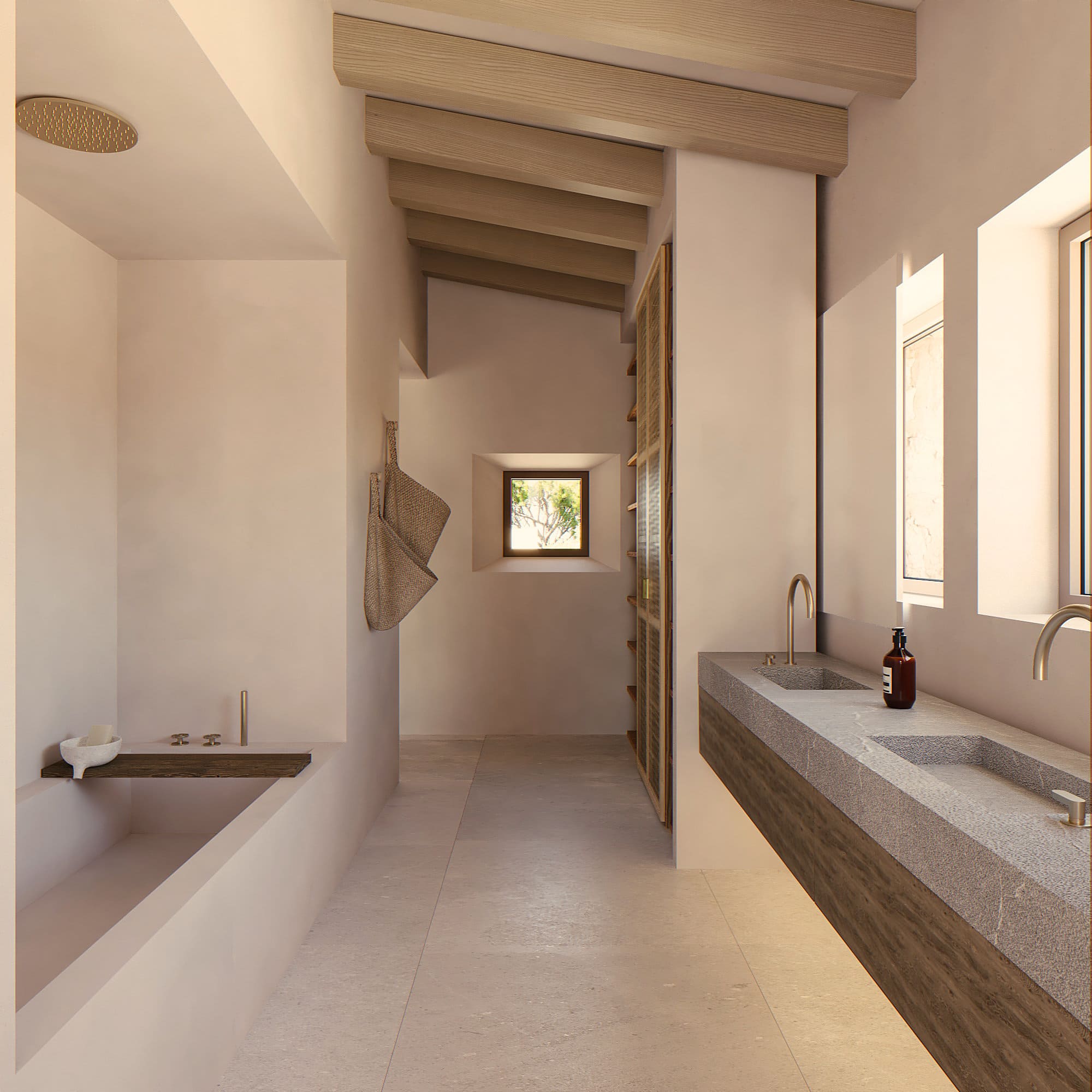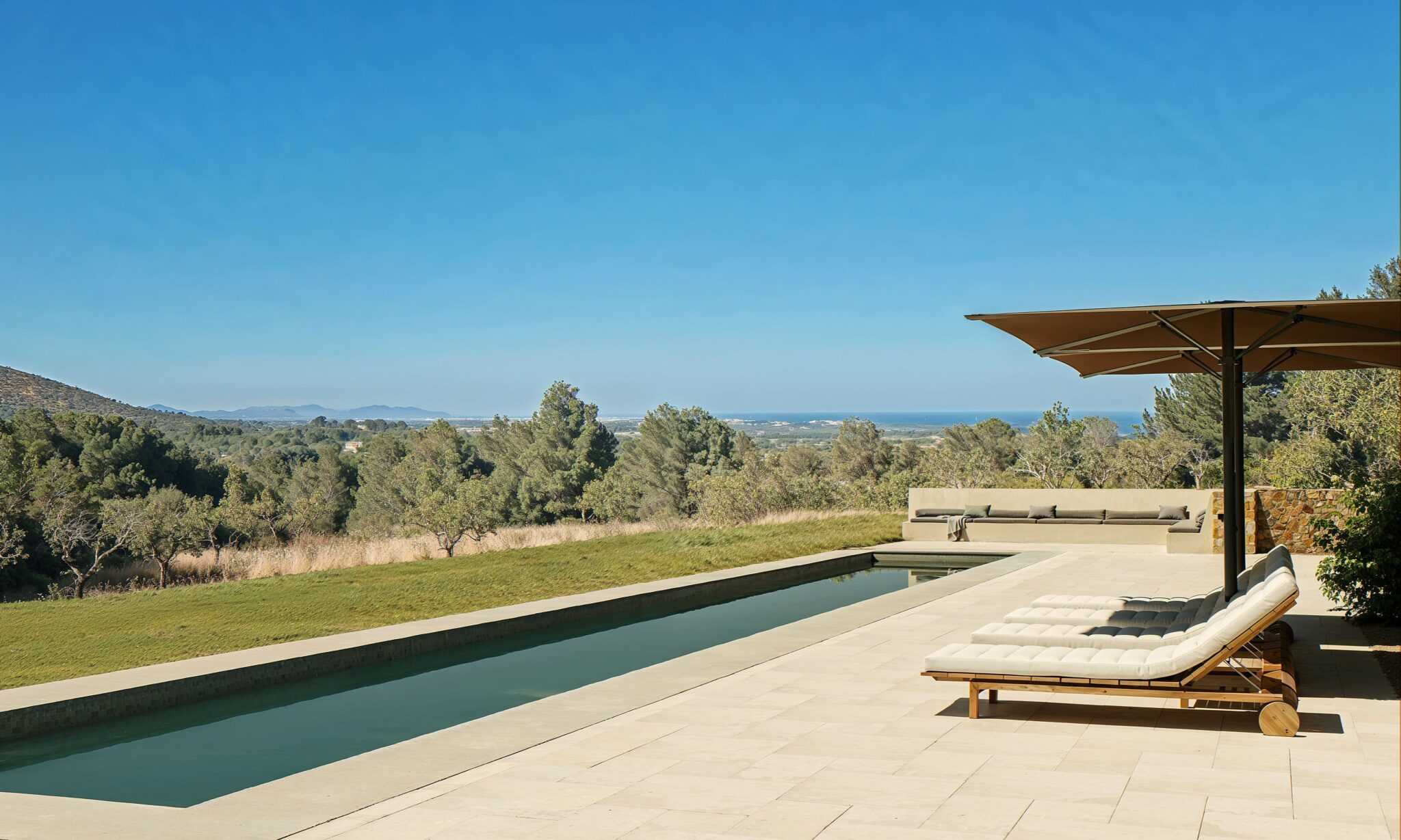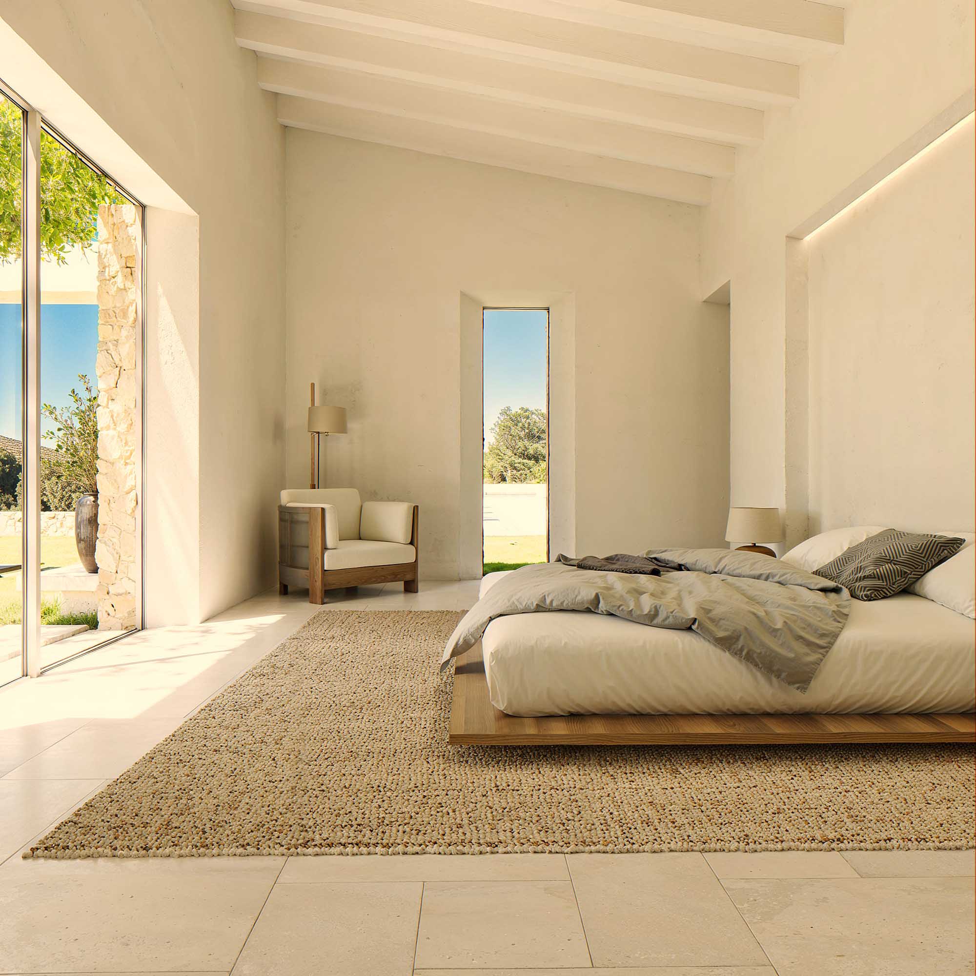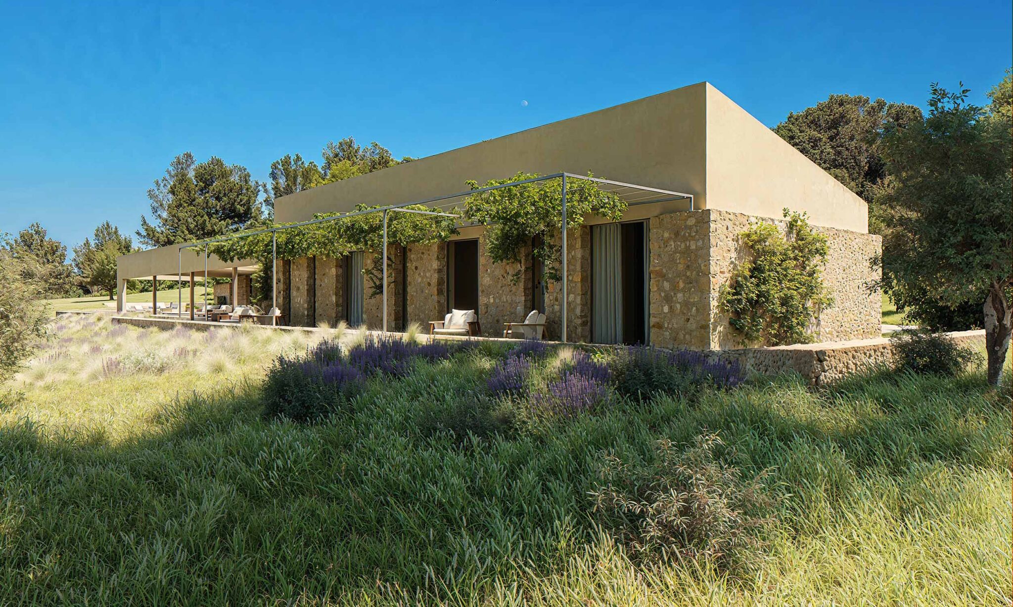 Los materiales naturales, como la piedra local y la madera, aportan una calidez única, mientras que los grandes ventanales y terrazas permiten disfrutar de la luz mediterránea y de las vistas al paisaje. Los patios y zonas exteriores están diseñados como extensiones del hogar, ideales para momentos de relax, reuniones familiares o simplemente para conectar con la serenidad del entorno. Cada detalle de la casa invita a vivir de manera tranquila y en armonía con la naturaleza que la rodea.